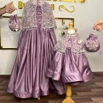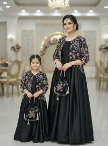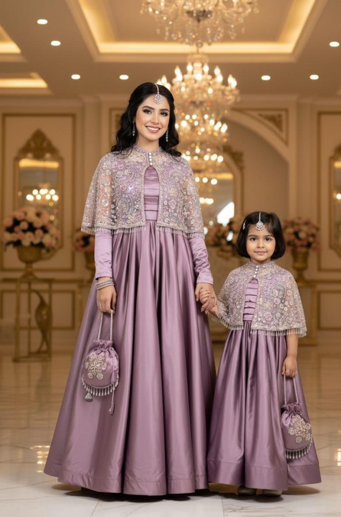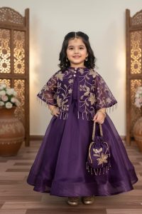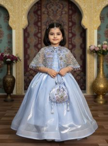 Elevate your style with our stunning Maxi dress, featuring an attached cancan, trending capshawl, and potli. Made from luxurious satin silk, this trendy outfit is perfect for any occasion. The potli detailing adds a touch of elegance, making it a must-have in your wardrobe.
