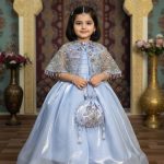 Elevate your style with our stunning Maxi dress, featuring an attached cancan, trending capshawl, and potli. Made from luxurious korean silk, this trendy outfit is perfect for any occasion. The potli detailing adds a touch of elegance, making it a must-have in your wardrobe.