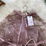 Elevate your style with our stunning lehenga shirt with trending capshawl, and potli. Made from luxurious korean silk, this trendy outfit is perfect for any occasion. The potli detailing adds a touch of elegance, making it a must-have in your wardrobe.
