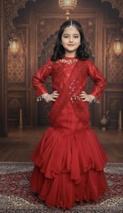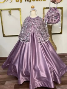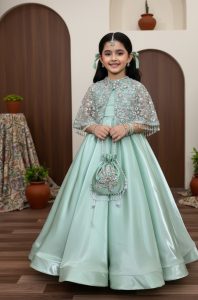 Elevate your style with our stunning Maxi dress, featuring an attached cancan, trending capshawl, and potli. Made from luxurious satin silk, this trendy outfit is perfect for any occasion. The potli detailing adds a touch of elegance, making it a must-have in your wardrobe.
